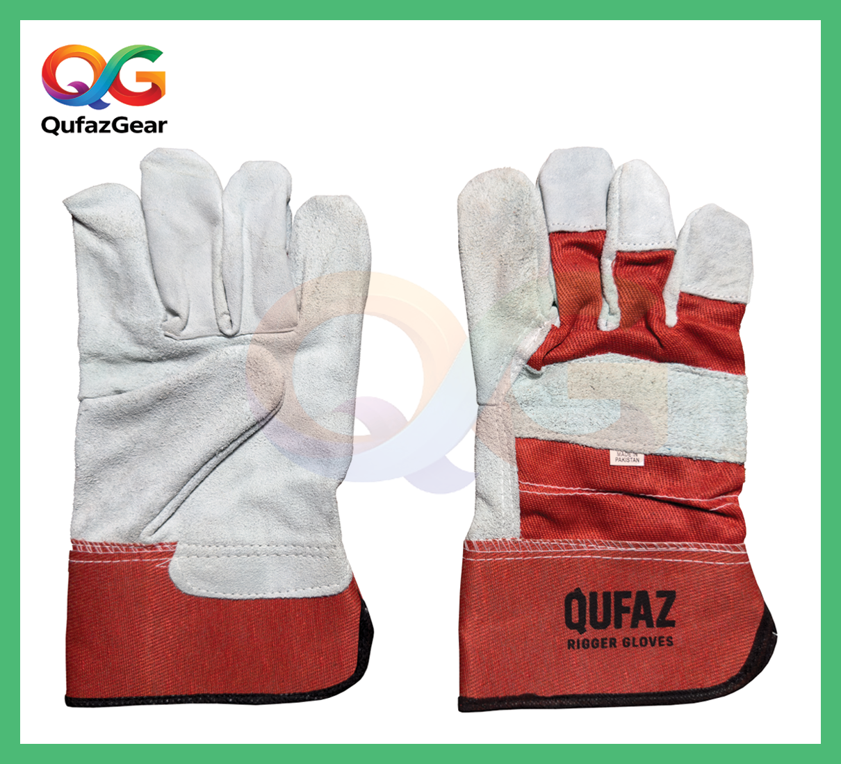 QUFAZ 707 Red & White Rigger Gloves are a cost-effective safety glove solution made from durable cowhide split leather on the palm, fingers, and knuckle strap. These gloves offer reliable hand protection and abrasion resistance for general industrial tasks. The breathable red cotton back enhances comfort during extended wear, while the rubberized safety cuff provides added wrist protection and easy on/off functionality. Ideal for construction, material handling, maintenance, and everyday industrial use, these gloves are a practical choice for budget-conscious buyers without compromising on quality.